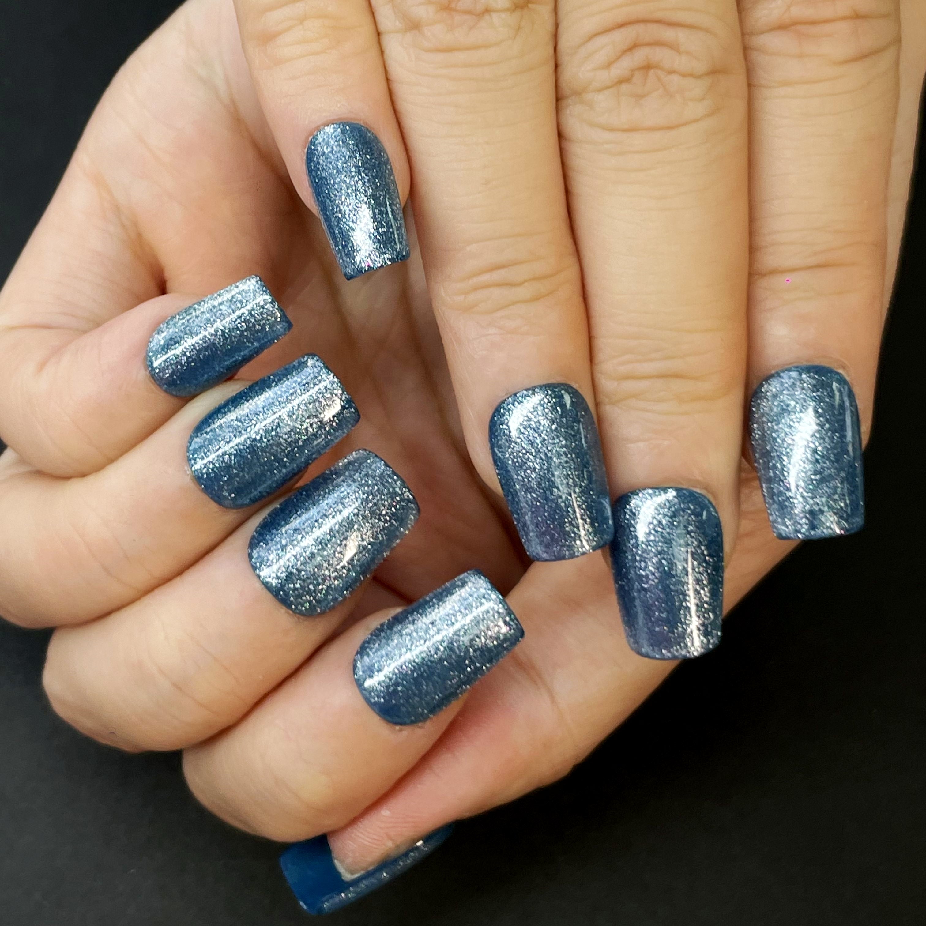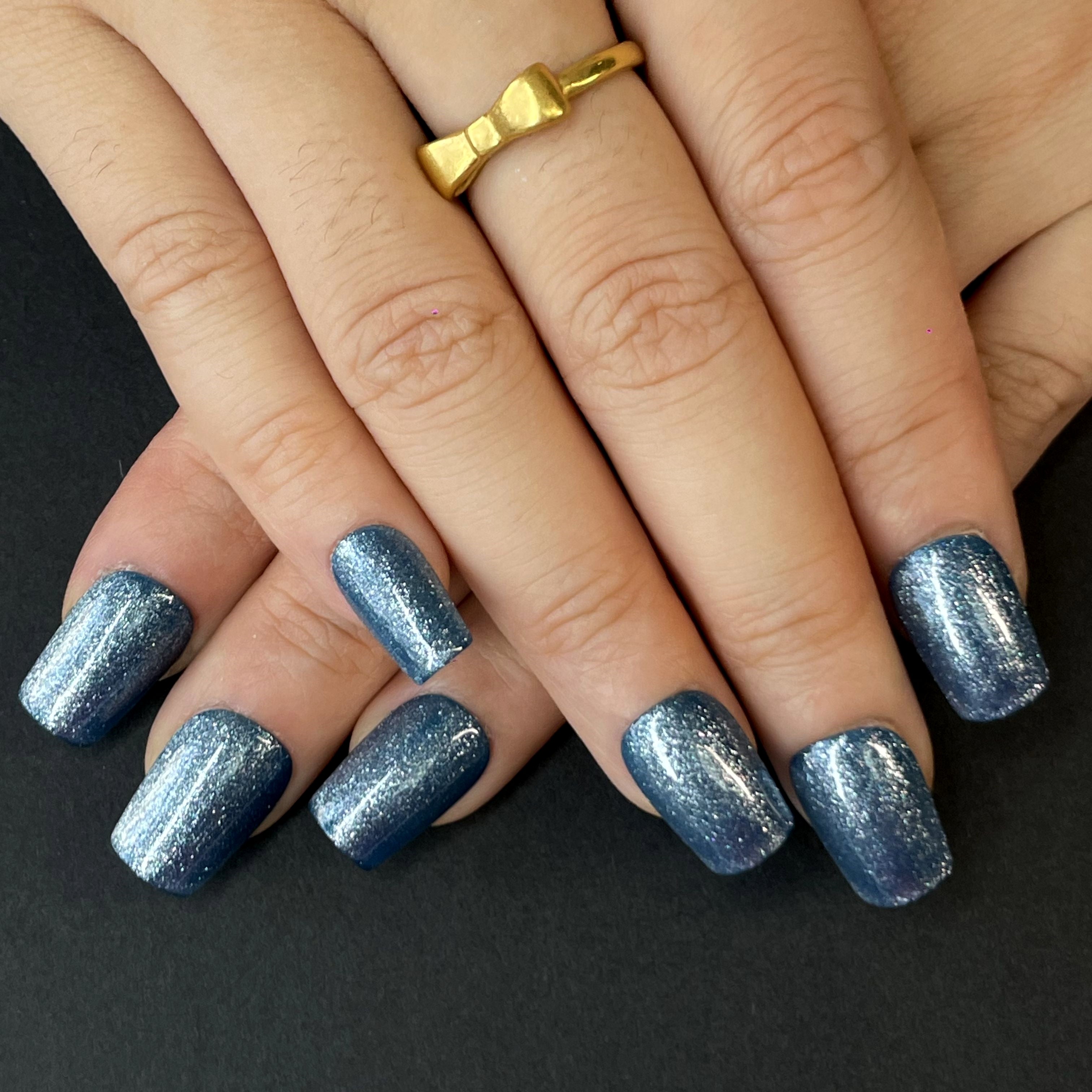 Home New arrivals Blue Glitter Press-On Nails – Short Square Shape with Dazzling Sparkles | Bold & Shiny Look for Party-Ready Style(K7)