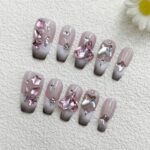 Be the first to review “Coffin Press-On Nails – Pink to Grey Gradient with Crystals & Metallic Charms, Sweet & Glam Baddie Style, Handmade Luxury Nail Set(219)” Cancel reply